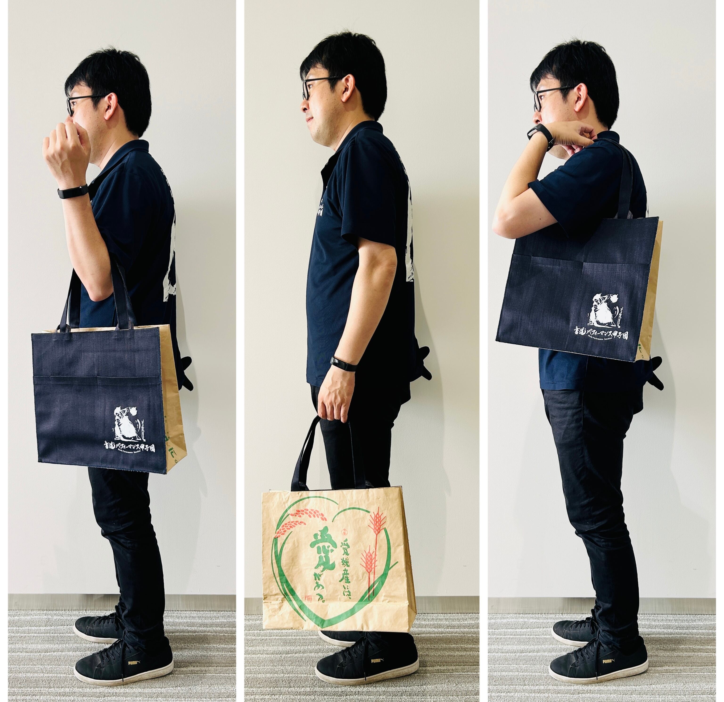 ※廃棄予定の米袋をリサイクルしているため、多少の擦れやシワがあります。(米袋は3枚重ねなので丈夫です。)